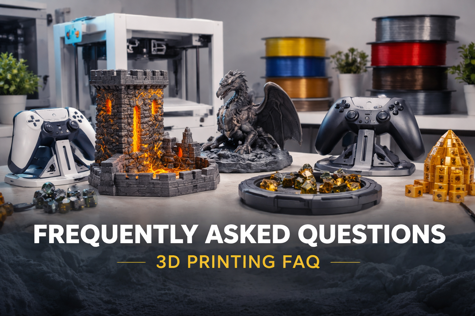 We create a range of 3D printed products including tabletop gaming accessories, dice towers, terrain pieces, display items, controller stands, desk accessories, and other custom-designed products. Everything is made with care and printed to order.